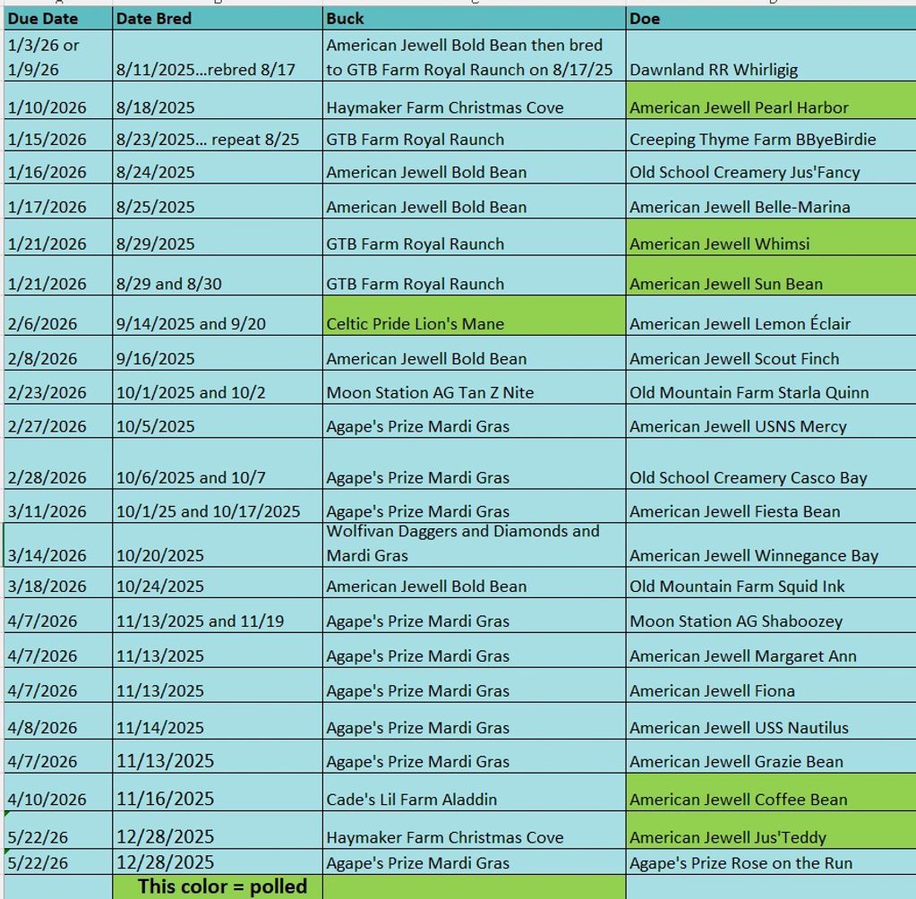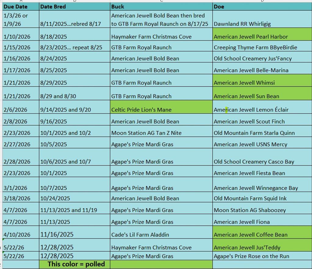 Exciting pairings are planned for the 2026 kidding season! We are using phenomenal herdsires that should really compliment the does in our breeding program. Discounts are offered to 4-H and show homes.